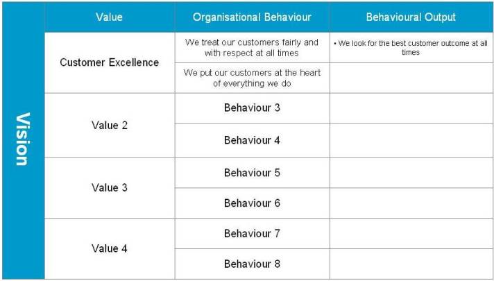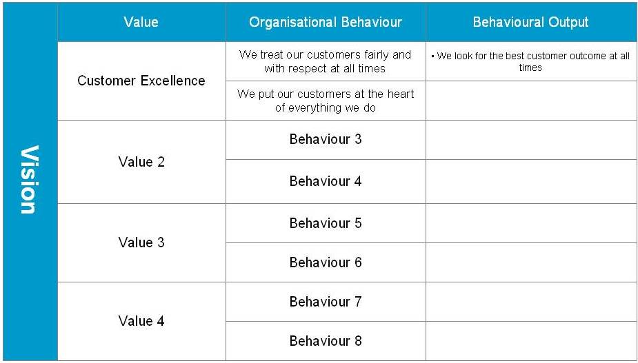 Once you have your Vision the next stage is to map out how your organisation has to ‘behave’ in order to reach that goal: that is something that I call cultural ambition. Organisational behaviours define your culture: they are at the heart of how you do business.